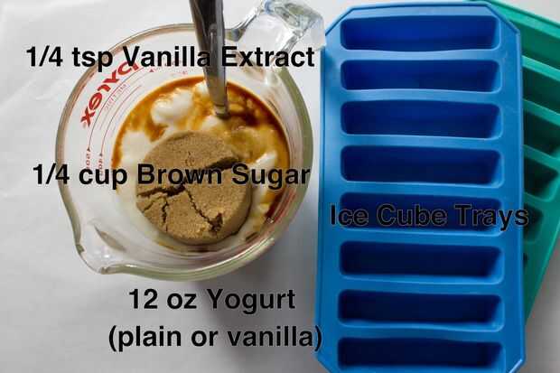 Nota: Si lo desea puede sustituto congelado pedazos de yogur de vainilla para las piezas de galletas masa con sabor a yogur. Solo congelar el recto-hacia fuera-de-su-envase de yogur de vainilla en las bandejas del cubo de hielo Si quiere hacer a este licuado un poco menos insalubre (chocolate).