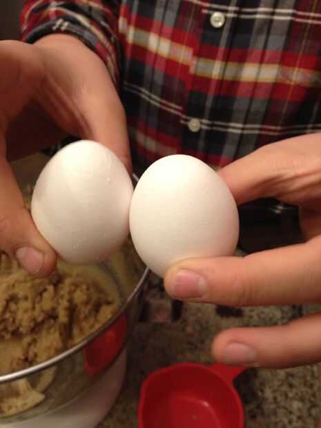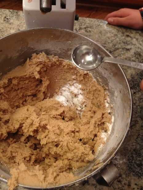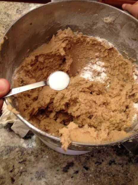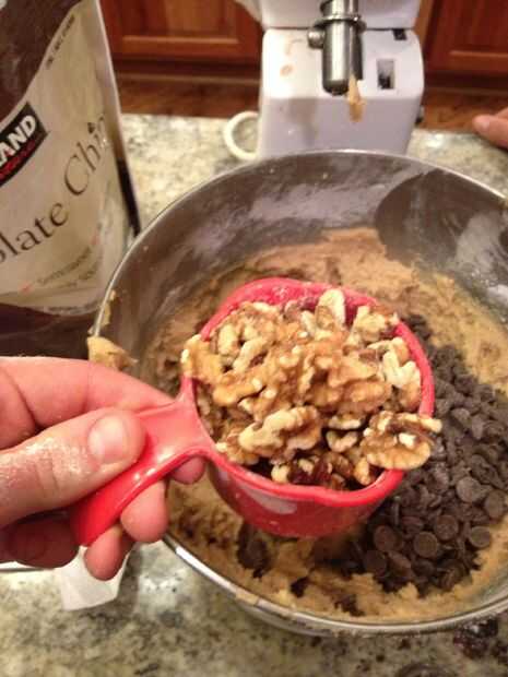 Añadir los huevos, uno a uno, incorporando bien antes de agregar el segundo. Agregar la vainilla y revolver. Ahora añadir la harina, bicarbonato, sal y crema de revolver tarter. Finalmente agregar las dos tazas de chispas de chocolate y las nueces.