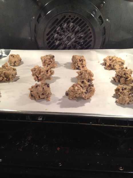Precalentar el horno a 350 grados. Línea una cacerola con una hoja de papel sulfurizado y sacar la masa de galletas en la bandeja. Ahora coloque en el horno durante 15 minutos. Después de cocido, deje para enfriar 5 minutos antes de sacar la bandeja y transferir a un wrack de alambre.