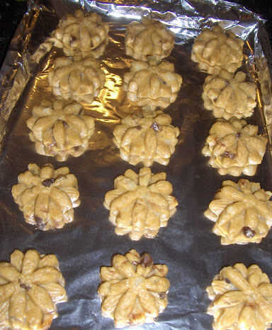 Cae por completo de cuchara o forma con el cortador de la galleta, lugar sobre una bandeja de hornear engrasada, o papel de aluminio sin enmantecar y hornear durante 10-15 minutos.