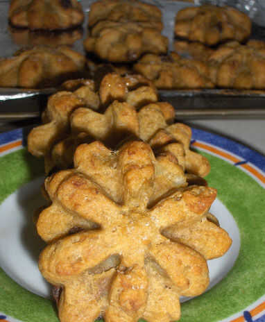 Espolvorear con azúcar en polvo antes o después de hornear las galletas o espolvorear con azúcar glas.