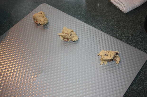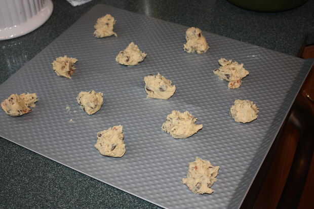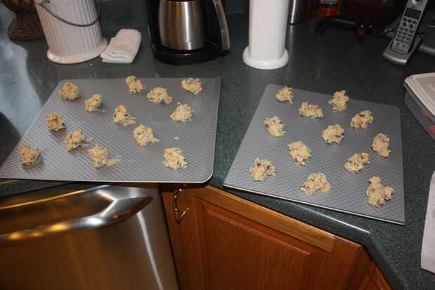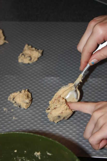 Salir unas hojas para hornear y grasa si es necesario. Queremos mantener nuestras cucharadas de masa de aproximadamente una cucharada. Galletas terminan aplanar hacia fuera mucho, así que mantener unos 2-3 pulgadas entre cucharadas.