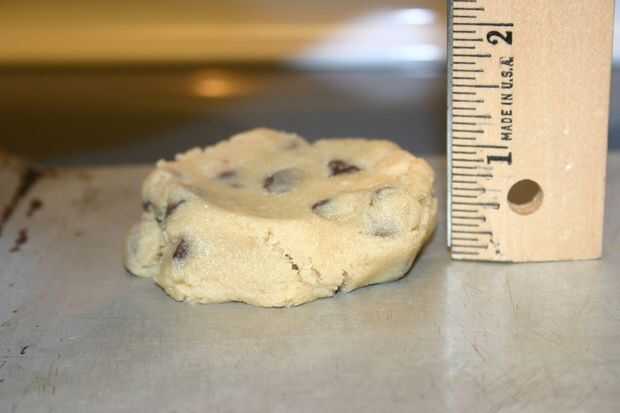 La cookie debe ser dos pulgadas de diámetro, 3/4 de pulgada de espesor. Triturar la galleta abajo con una cuchara. No debe ser una pelota, pero más como un neumático.