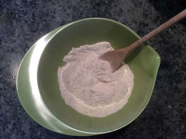 5. mezclar la harina, el bicarbonato de sodio y la sal junto con la cuchara mezcladora
