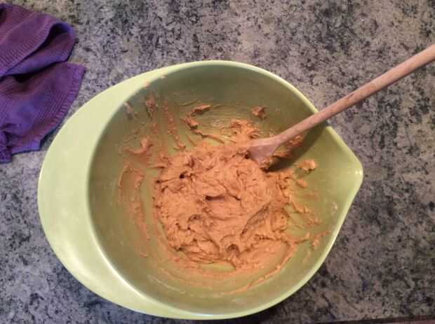 2. mezclar hasta que esté cremosa con una cuchara de mezcla
