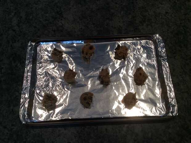 1. cubrir la superficie de la bandeja para hornear galletas con papel de aluminio (Esto hará que las cookies no se adhieren a la hoja de galleta)