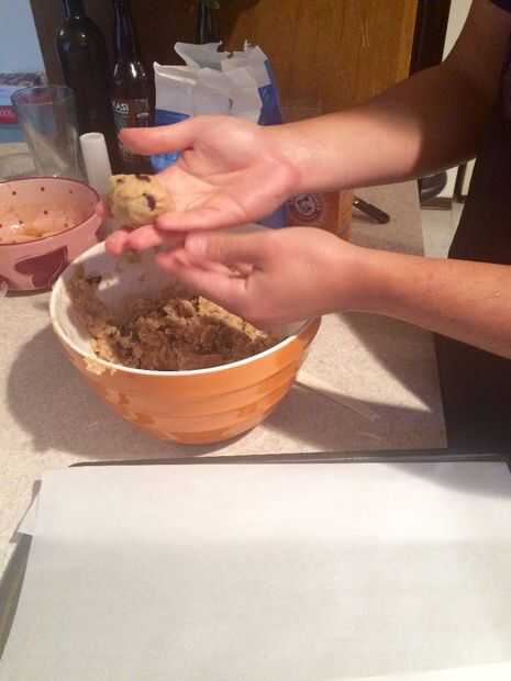 Tomar una cucharada de masa y enrolle la masa en una bola.