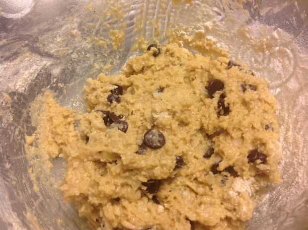 Añadir trocitos de chocolate y mezclar