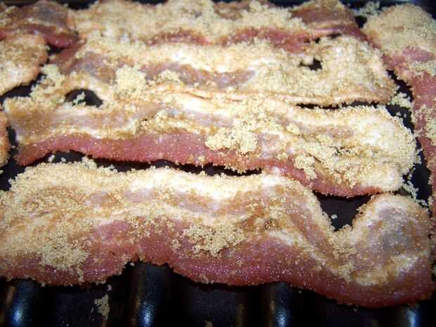 Poner el azúcar Moreno en un plato o en algún tipo de recipiente pequeño con un borde. Mezcle el tocino en el azúcar marrón así su completamente revestida y se coloca sobre el bastidor o asadera. Puede presionar más de azúcar morena en el tocino una vez su en la parrilla si lo desea.