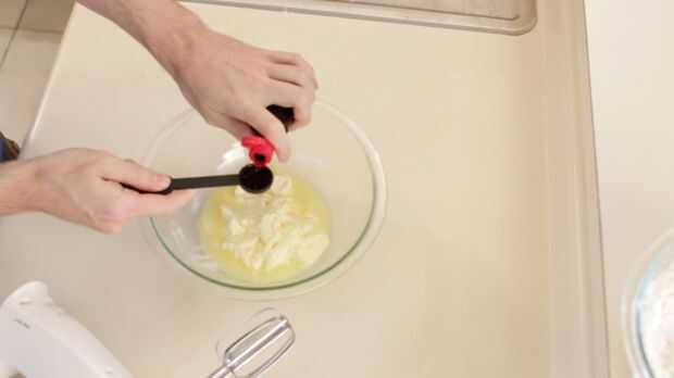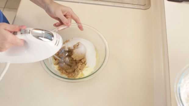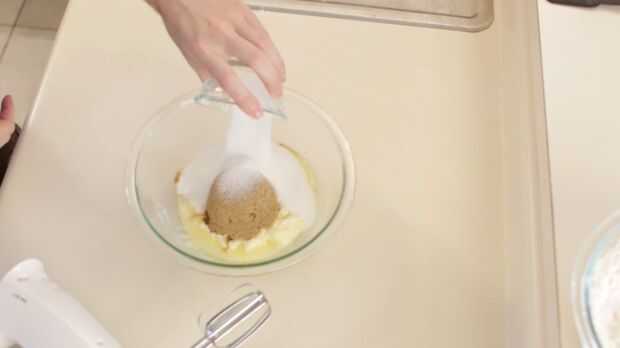 A continuación, agregue el azúcar vainillado y marrón granulado. Entonces la crema junto con un mezclador, o puede utilizar un batidor robusto.