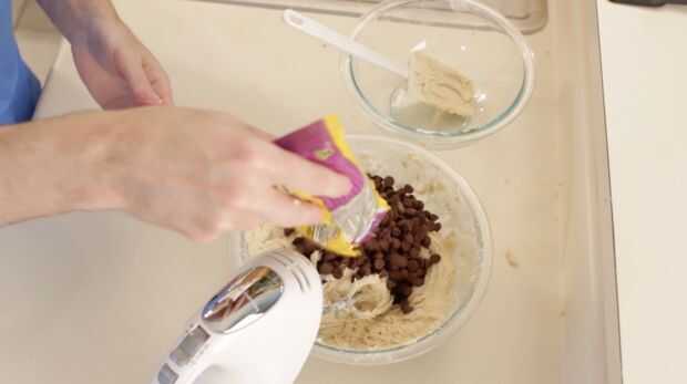 Ahora mezclamos en nuestro paquete de chispas de chocolate. Después de esto hará con la batidora, ahora para la diversión parte, lamiendo las aspas! Cuando era un niño que siempre estaba emocionado de llegar a lamer las aspas, miraba como mi mamá limpia la mayoría de él, recuerdo pensar "Deja algunos en!" jaja