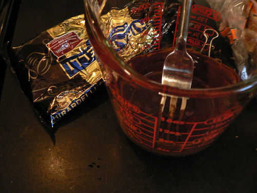 * dependiendo de la cantidad de chocolate, repetir zaps de 20-30 segundos hasta que el chocolate empiece a fundirse