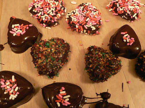 Una cosa agradable sobre la adición de las chispitas de caramelo, es que esconden una multitud de pecados, si tienes problemas de chocolate en la capa externa.