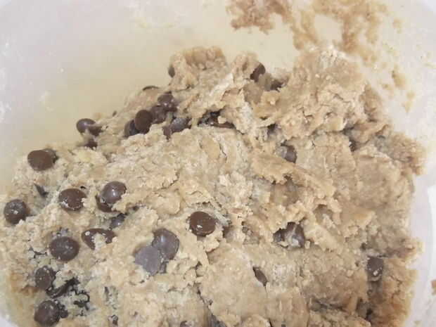 Sift en harina y el cacao. Agregar chocolates y mezcla a una pasta. Si está demasiado seco, añadir leche. Si la mezcla está demasiado húmeda, añada más harina.
