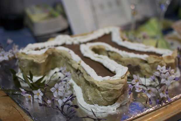 este es verdaderamente uno de los mejores jamás comerá! Este es un gran postre el día de Pi o cualquier día del año. Aterciopelada, rico chocolate, se sienta encima de una corteza de hojaldre dorado, rematado con copos de crema batida azucarada.Paso