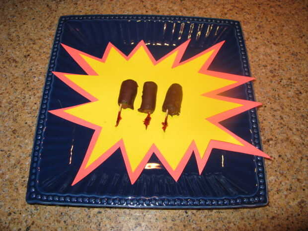 Justo a tiempo para el 4 de julio, Chocolate cubierto petardos! Chiles Serrano piel, cortado a la medida de cuetones, relleno con una ganache de chocolate y bañado en chocolate! estas bellezas se sirven estilo de petardo, o en largos pinchos de bambú "Botella cohete estilo". Pop'em en la boca como un dulce y picante bocado, o servir en su helado preferido para darle un poco de calor. ¡ Disfrute!