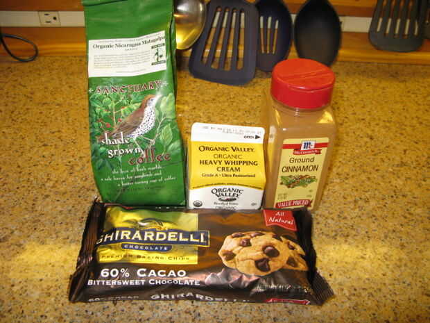 Cuando la crema hierva, retirar del fuego y verter sobre los trozos de chocolate. Dar unos minutos para derretir el chocolate, luego wisk juntos hasta que quede suave. Este es el punto donde puedes ser creativo con su ganache agregando algunos sabores adicionales, un poco vainilla, menta, naranja, algún licor si quieres... Esta vez estoy agregando un poco de canela para traer un poco al sur de la llamarada de la frontera, y un café oscuro hasta que los sabores pop. Mezclar todo junto hasta que esté suave, luego deje que se enfríe. Tendrá que enfriar a temperatura ambiente antes de que podemos utilizar, por lo que podemos pasar a la preparación de los pimientos.