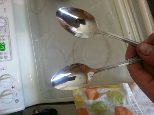 Saque la mantequilla derretida del chocolate/maní de la olla de agua hirviendo y el tazón de fuente en una toalla para asegurarse de que su contador no mojado o dañado por el calor.