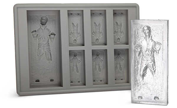 página web sobre el Geek que sugieren para hacer chocolates con el Star Wars Han Solo en carbonita hielo cubito. Bueno aquí es una receta de chocolate extra deliciosa.Paso 1: Se necesitaHan Solo o cualquier otro dulce Geek creo que silicona molde (mú