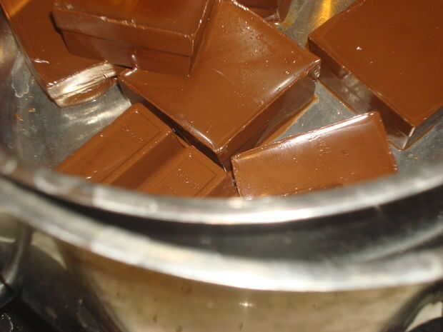 Derretir lentamente el chocolate a baño María, revolviendo hasta que esté suave.