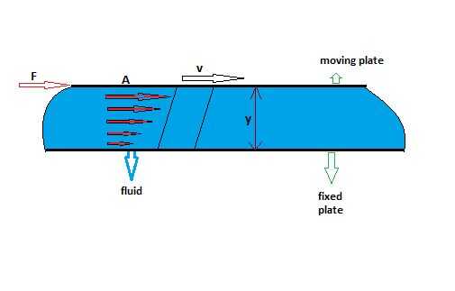 Concluimos que la fuerza F necesaria para mover las placas es proporcional a su área (área superficial más grande = más fuerza necesaria para mover debido a la mayor cantidad de líquido que se mueve junto con la Junta), es proporcional a la velocidad que es inversamente proporcional a la distancia entre la placas y (y = múltiples capas de fluido = más fuerza necesaria para mover todas las capas).