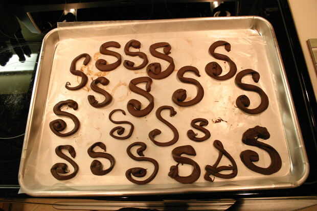 Una vez que un estilo que te gusta, tubo todas las iniciales que necesites en el papel encerado y deje enfriar.