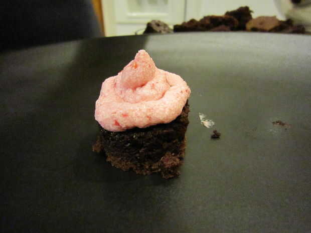 sin horno de reflujo es necesitada.Hacer este pastel de pudín de código abierto hackeable.Pudin de chocolate, Cool Whip topping de postre, cacao en polvo, conservas de frambuesa y una corteza de galletas sandwich de chocolate/vainilla.Este pastel tie