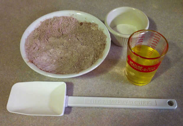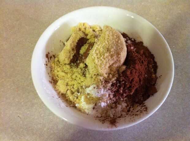 1. Mezclar la harina de almendra, el azúcar glass y cacao en polvo en un tazón.
