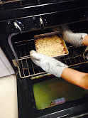 Coloque la bandeja en el horno y hornear a 350 º F por 25 minutos. Entonces, retire la cacerola del horno y deje enfriar durante al menos 15 minutos.
