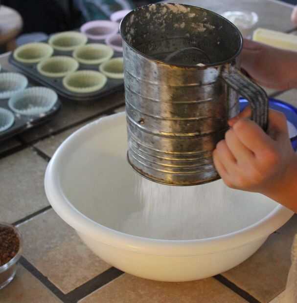Tamizar los ingredientes secos evitar grumos y hacer una masa mucho más suave. Si no tienes un tamiz se puede obtener un colador de malla de alambre barato de la tienda de dólar y que funciona igual de bien.