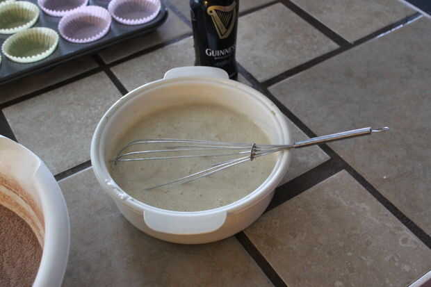Añadir poco a poco los ingredientes secos a los ingredientes húmedos hasta que todos los ingredientes están bien mezclados.