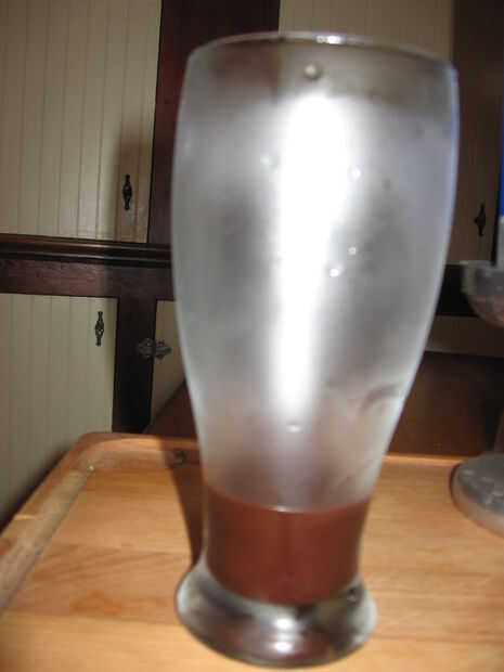Una vez lisa la mezcla de chocolate, añadir 8-10 onzas de soda del club. Desea aproximadamente un cuarto de pulgada o menos de la parte superior del cristal para no hacer lío cuando se agrega la cucharada completa. Si no quieres líos...