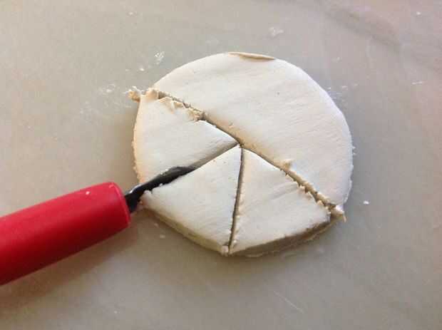 Marque el centro y empezar a triángulos de corte con el punto en la marca en el centro