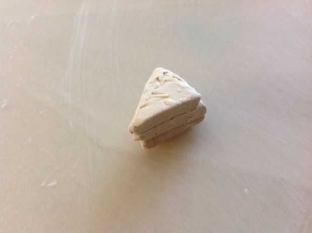 Si los pasteles no son incluso, cortar el triángulo más grande del mismo tamaño que los otros