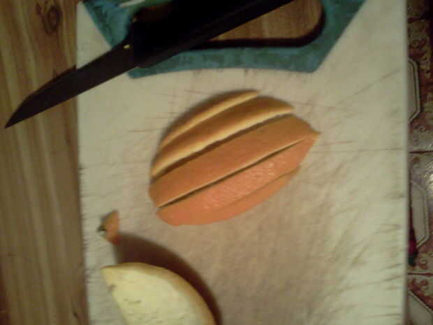 1 º comenzar con naranja lavada y rebanada de ellas por la mitad y luego en cuartos con cuidado jale la naranja de la piel, y por supuesto comer la naranja vuelta la cáscara sobre y cortar en tiras de 1/4 a 3/8 de pulgada.