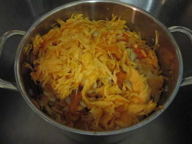 Aquí está mi listo para ser separado de todas las vísceras calabaza semillas de calabaza (mis padres llamaban tripas, y lo hago). Si usted encuentra esto para ser a bruto por su sensibilidad, usar guantes, o Compro ya asado las semillas de calabaza (y omitir los pasos siguientes). Acabo de llegar en bote y agarró una mano llena de tripas con semillas, he quitado las semillas y ponerlos en el colador y las tripas en el bolso de la camiseta. Tardó un poco más de media hora.
