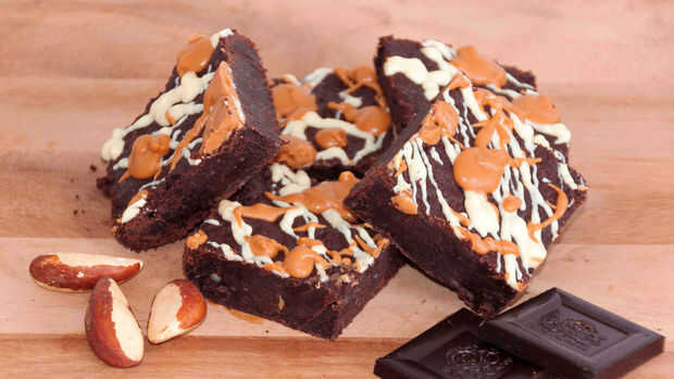 ingredientes:Para la capa de brownie:100g sin sal mantequillachocolate amargo 200g, picadas4 huevosgolden 250g de azúcar impalpable100g de harina1 cucharadita de polvo de hornearcacao de 30gPara la capa de mantequilla de maní:250g mantequilla de maní