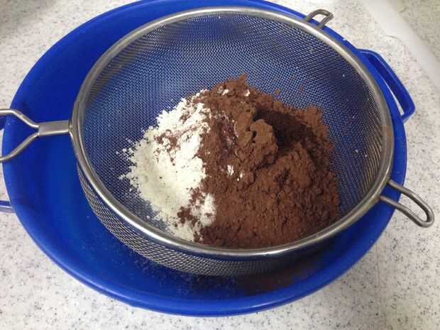 En un bol agregar la harina, polvo de coco y polvo de café y mezclar juntos.