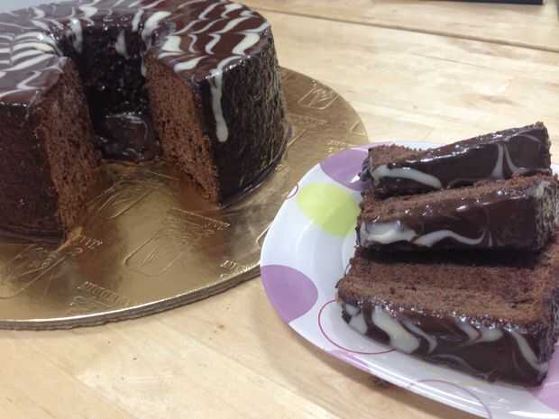 Screwpine torta con crema de Chocolate (pastel de pandano)