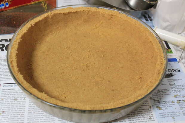 Utilizando el procesador de alimentos, se desmenuzan las galletas digestivas. Añadir mantequilla y mezclar hasta bien mezclado.
