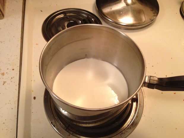 - En dos ollas de separar, calor Crema gruesa y pesada hasta muy caliente pero no hirviendo. (No calentar juntos en un envase, o la crema se cuaje).