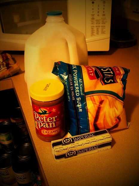 Mientras se hornean los cupcakes, reunir los ingredientes para el glaseado de mantequilla de maní.