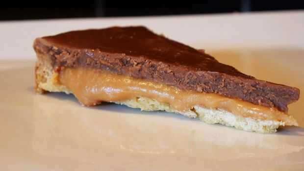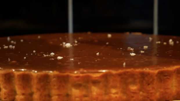 Poner el chocolate en un bol. Poner la crema de leche a hervir y verter sobre el chocolate. Dejar reposar 5 minutos. Sir la mezcla continuamente hasta que la crema y el chocolate son homogéneas. Verter el ganache sobre el caramelo. Espolvorear algunos sal de mar en la parte superior. Licencia para 2-3 horas antes de servir.