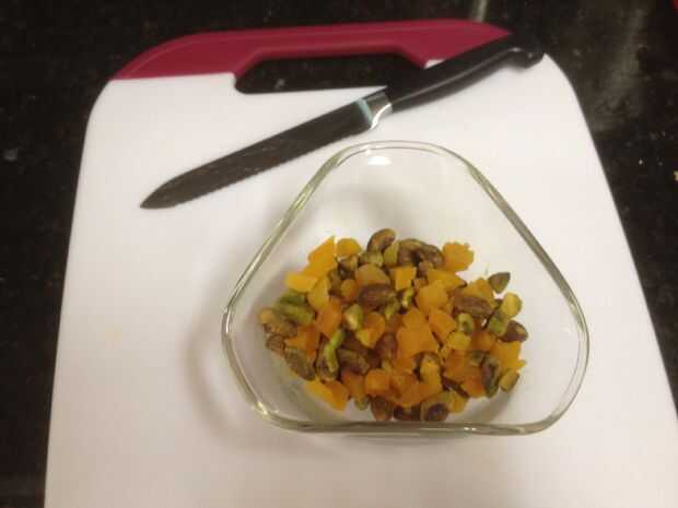 Entonces agregué suficiente chocolate para cubrir las tuercas y las frutas les atar juntos