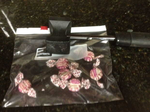 • Poner los caramelos en una bolsa de plástico resistente, utilice un martillo de carne para romper para arriba