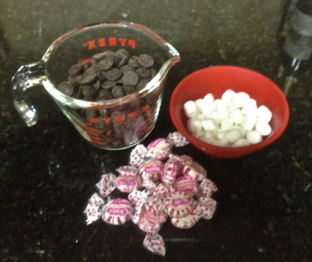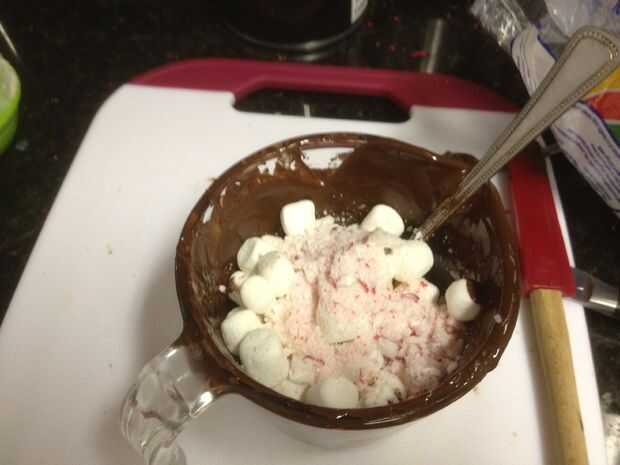 • Mezcla de fragmentos con las mini malvaviscos y añadir suficiente chocolate para cubrir el caramelo