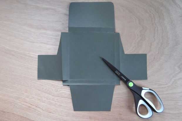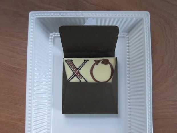 1. medir el tamaño (longitud x ancho) de la corteza de chocolate. Crear ese esquema en el centro de la cartulina. Medir el espesor de la corteza y usar esta medida para dibujar líneas fuera del contorno anterior dibujado. Doble a lo largo de todas las líneas dibujadas.