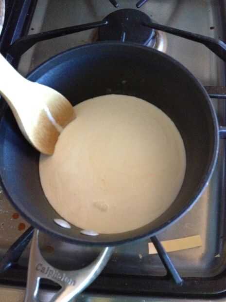 Mezclar en una taza de crema. Calentar a ebullición, vierta en la licuadora.