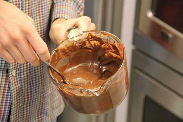 -atemperar el chocolate antes de verter en el molde. Esto evitará a florecer, caracterizada por el color blanco en la superficie. También, una vez que está listo para comer evitará fusión en contacto con los dedos. También escuché chocolate templado se encogerá ligeramente cuando haya enfriado y que potencialmente resbale hacia fuera del molde fácilmente.