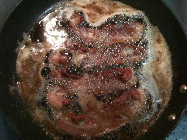 Probablemente la parte más importante del proceso. Tocino bien cocido es la clave para la mayoría de las cosas en la vida.  En este caso el tocino necesitará cocinar extra crujiente ya que va ser desmenuzado hasta en la frágil.
